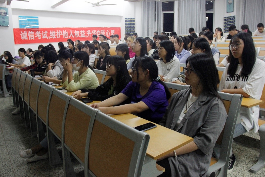 相关规定讲解结束后,孟祥栋老师还通过考试失信违规的典型案例引导同学们对相关违纪行为进行思考,同学们都认真聆听,积极回答老师提出的问题,并认真记录下相关管理规定的重点内容。活动最后,孟祥栋老师对活动做了最终总结,提醒同学们要明确学风考风要求,严格遵守考试规定,诚信应考,同时鼓励大家摆正心态,打好基础,通过自身努力不断进步,考取理想的成绩。