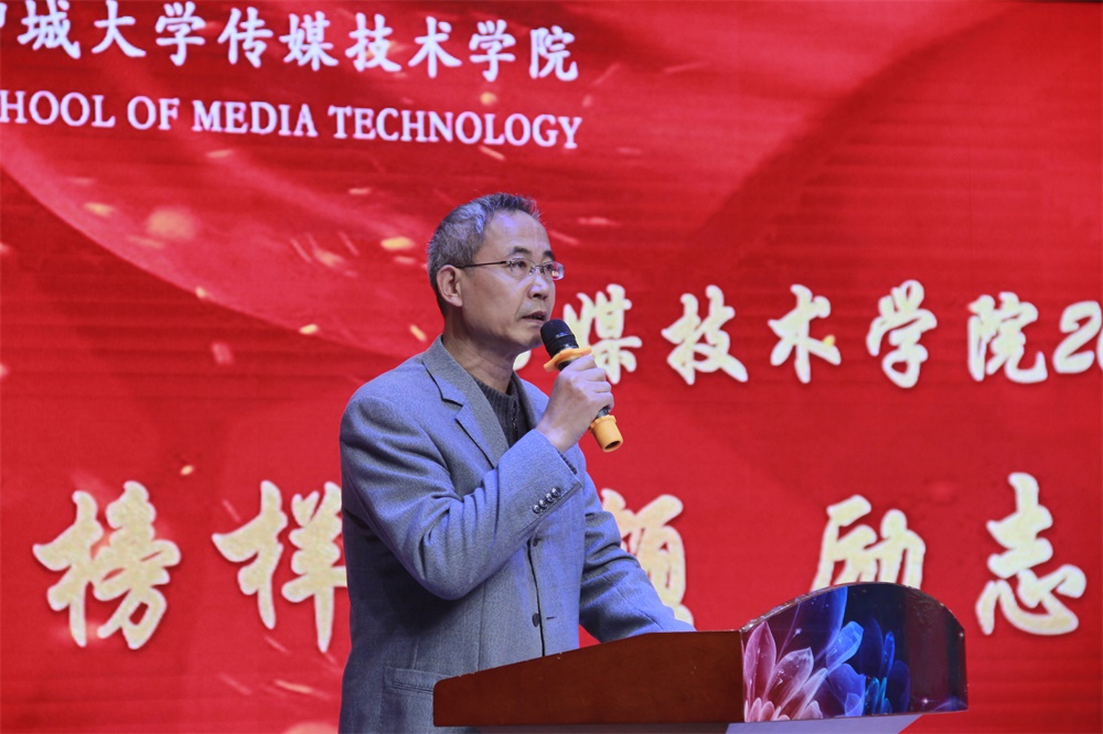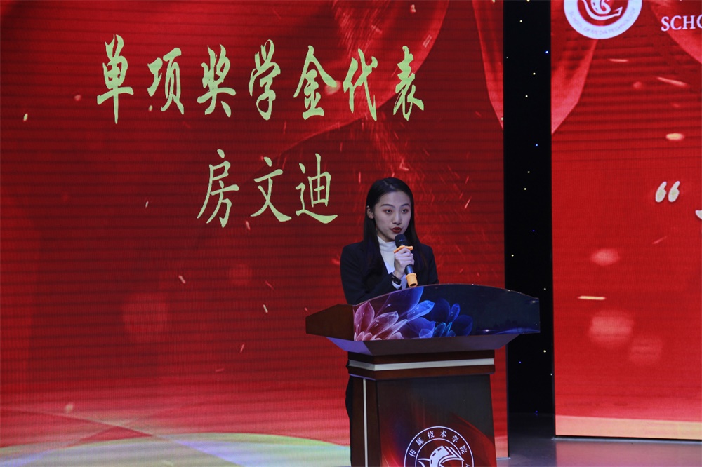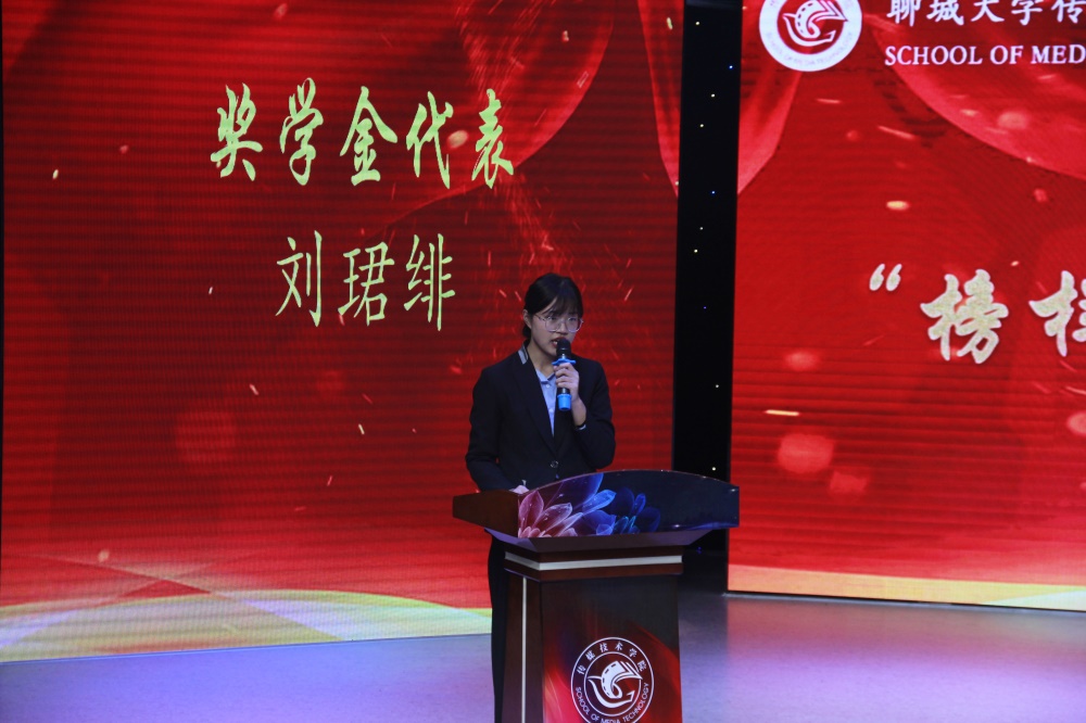 颁奖典礼在主持人热情洋溢的开场词中拉开帷幕,李焕芹经理上台为典礼致辞,祝贺获奖员工和先进集体,鼓励学院广大学子向他们学习,并对同学们提出四点建议:包括合理规划学习生涯、寻找正确学习方法、磨练自我学习意志、树立终生学习精神。他希望同学们以优秀同学为榜样,将“敬业、博学、求实、创新”的校训精神牢记心中,刻苦学习,做一个不愧于时代、不愧于人民、不愧于家国的传媒人。李焕芹经理的致辞得到同学们的热烈反响,在一片掌声之中,主持人宣读获奖人员名单。