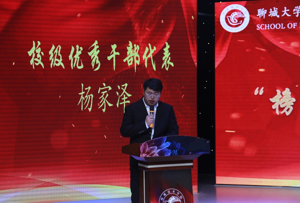 校级优秀员工干部代表杨家泽说:“要当好员工干部首先要当好员工,综合素质好的员工,要有一份责任感,要有实干精神。”向同学们充分表达了身为员工干部对自身的严格要求和以身作则的精神。