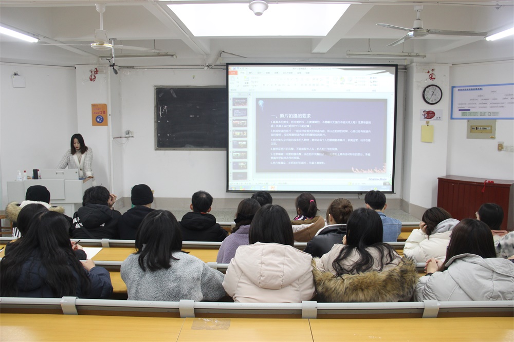 随后,策划运营部部长吴彤彤就宣传照片这一方面向宣传委员们进行普及,向他们讲述了各个班级进行班级活动时,拍照宣传以及照片拍摄的基本流程和规范,并强调及时联系宣传部拍摄活动的重要性以及拍摄过程中宣传委员的协助性。接着,吴彤彤围绕活动总结的规范形式、基本信息的准确以及活动特色的突出三点进行总结撰写的讲解,通过典型案例指明容易出现的问题,分析出现问题的原因,提出针对性的改进方案。