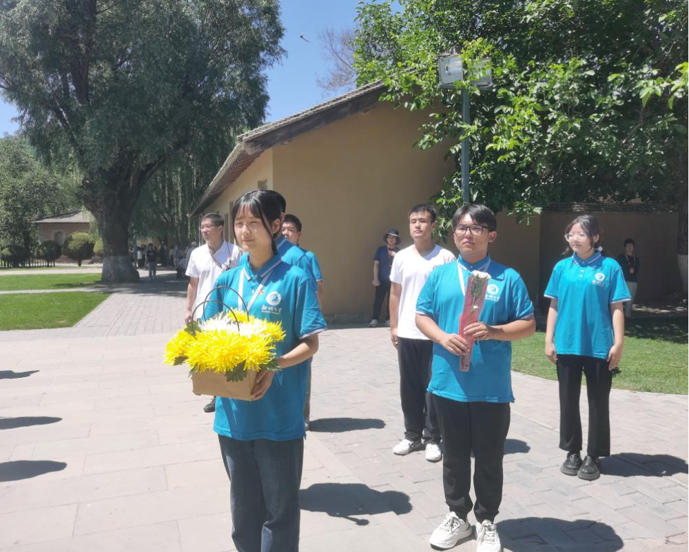 7月16日,bwin必赢“红色领航”社会实践服务队走进延安枣园革命旧址,了解往昔峥嵘岁月。沿着园区道路,实践队员参观了毛泽东、周恩来等老一辈革命家的旧居。其中,陈列的旧照片、革命先辈们曾使用的生活物品等,再现了革命先辈们在艰苦的环境下商议决策的画面。参观完毕后,实践队员在五大书记铜像前列队,敬献花篮。
