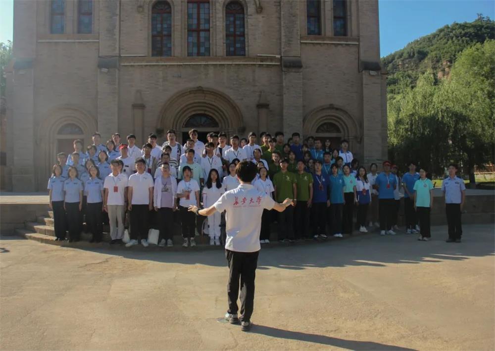 在鲁迅艺术文学院天主教堂前,实践队与其他高校团队共同合唱《保卫黄河》,歌声洪亮,铿锵有力,唱响对祖国大好河山的无比热爱以及对建功新时代的激情与信心。