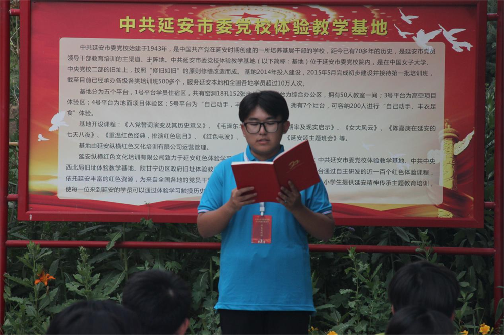 随后,实践队跟随讲解员的步伐,来到中国人民抗日军政大学纪念馆。“抗大”被誉为“培养干部的‘重工业’、制造抗日干部的‘熔炉’、民族解放的‘旗帜’”。展馆中的图片和陈列物品真实地再现了老一辈革命家在此进行革命活动、播撒革命火种的情景,展现了抗大可歌可泣的不朽功绩。通过聆听讲解,观看馆中陈列,队员们深入了解了抗大的创立及发展历程,领悟了抗大精神的深刻内涵。接着,实践队徒步来到延安革命纪念馆,与本期共同实践的24所大学,33支团队一同合唱抗日军政大学校歌,重温入党誓词,在铿锵的歌声与誓言中,理想信念更加坚定。