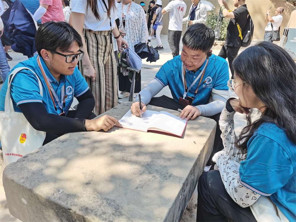 党课后各实践队代表分享学习感受,“红色领航”社会实践服务队代表房阁参与分享。她鼓励在延安参与实践调研的同学们应积极感悟革命初心,践行时代使命,做到“党有号召、团有行动”,明心立志、开拓进取,谱写新时代的青春之歌。
