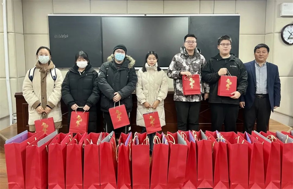 在全国硕士研究生统一招生考试来临之际,为了帮助考研学子减轻备考压力,鼓舞士气,坚定信心,12月14日,bwin必赢于11#a401开展了“一研为定,旗开得胜”考研爱心大礼包发放活动。公司党委副书记、经理郭峰,党委副书记、副经理赵勇,团委书记刘妙祎,专职辅导员孟祥栋及部分考研同学参与了此次活动。