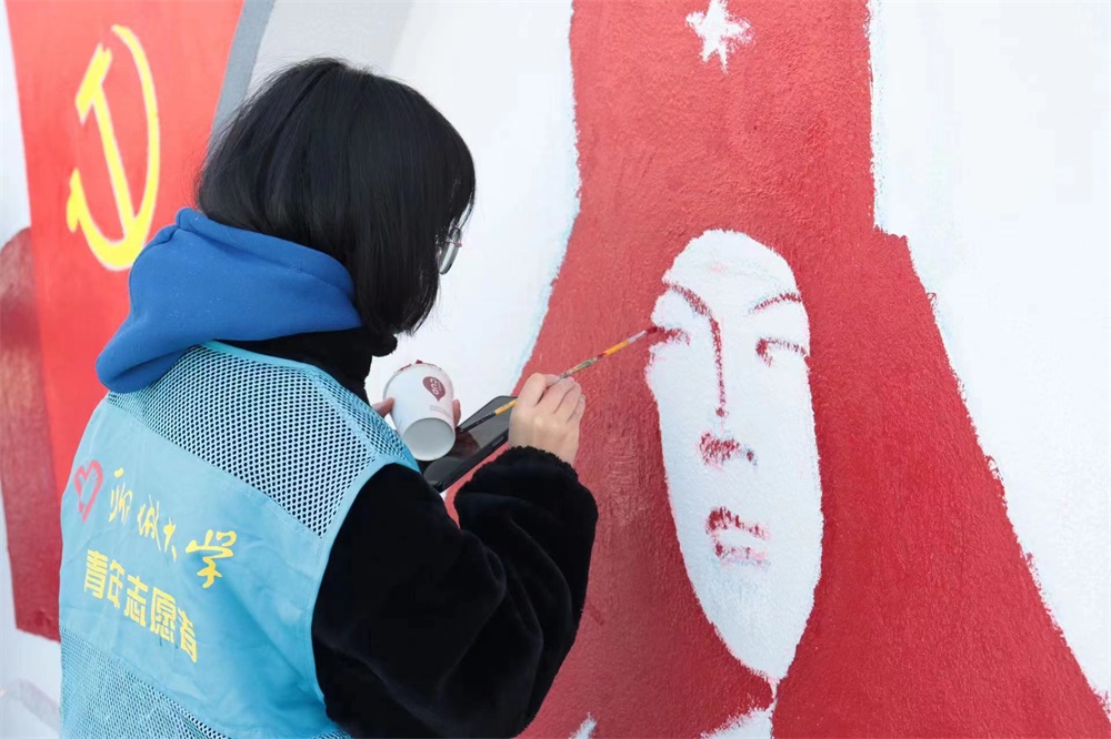 用画笔描绘爱心,用歌声传递温暖。同学们带着一颗热爱公益的心,踏上了学雷锋的征程,活动以“弘扬雷锋精神,描绘大美乡村”为主题,分成两组同时进行,一组同学绘制墙绘,一组同学参与文艺演出。参加墙绘绘画的同学们分成六小组,每个小组分工明确,互相协助,他们用心描绘,用爱填充,将雷锋精神融入每一笔每一画中,让墙绘成为了一道美丽的风景线,在弘扬雷锋精神的同时将艺术融入乡村生活,以志愿服务力量助力乡村文化振兴。