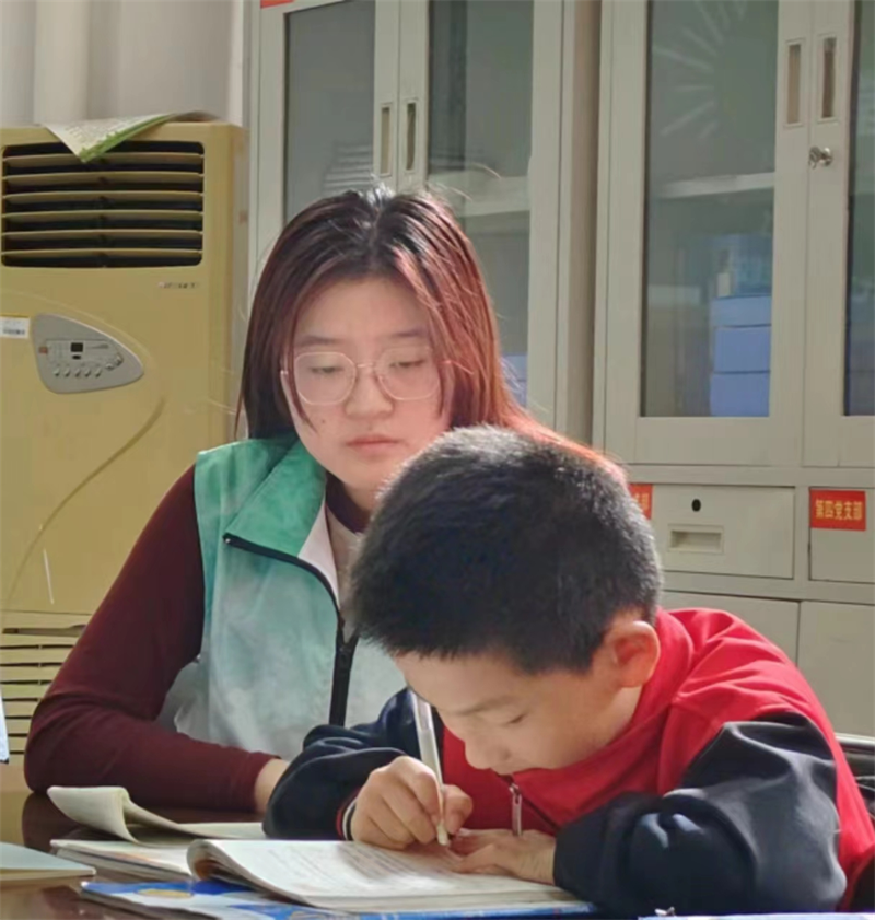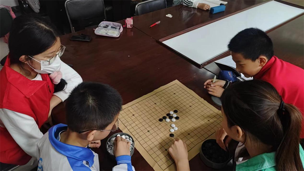 同时,服务队成员们通过互动式的教学方法,循序渐进地引导孩子们领悟难题要点,进一步提高了孩子们的学习兴趣和自主学习能力。课间休息时间,服务队成员们也贴心地为小朋友们准备了象棋、五子棋、找不同等益智小游戏,小朋友们积极开动脑筋,发挥想象力和创造力,主动与服务队成员互动,现场气氛活跃。