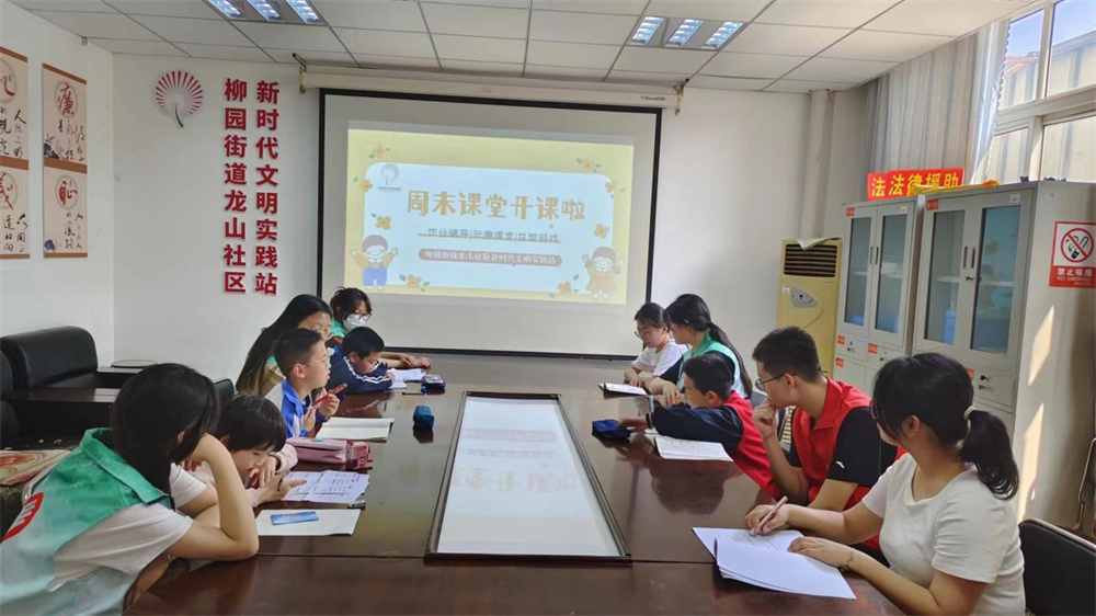 志愿服务源于心,奉献爱心在于行。活动开始前,服务队成员首先对一天的活动进行了详细的规划,并提早到达社区活动场地布置现场,迎接小朋友们的到来。待小朋友们到齐后,服务队成员向他们讲解了此次活动的主要任务和注意事项。此次周末课堂活动采取“一对一课业辅导”与课外游戏交叉进行的模式,在课业辅导环节,服务队成员们耐心细致地为孩子们解答学习中的疑难问题,帮助他们巩固在学校所学的知识。
