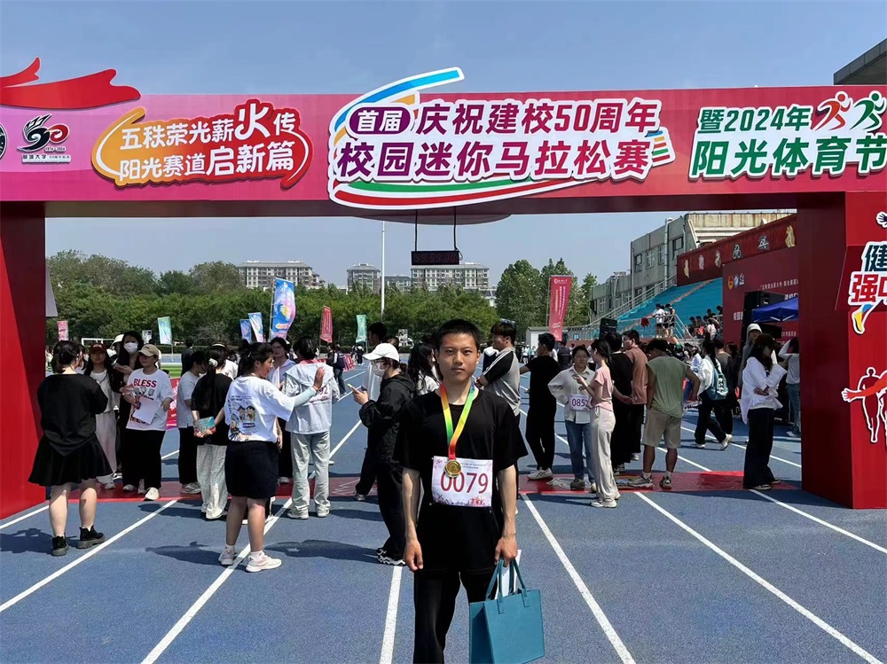 比赛过程中,运动员们不断调整呼吸,保持稳定的步伐,专注于自己的节奏,挑战着身体的极限,咬紧牙关,坚持到底。经过激烈的角逐,选手们陆续抵达终点,并在终点领取了特制的纪念卡片。同时,完赛的选手们在休息过程中参与了主办方精心设计的游戏,通过完成踢毽子、跳绳等小游戏的方式获得不同的纪念印章,这些小游戏不仅为比赛增添了轻松愉快的氛围,也让同学们在紧张激烈的比赛后,放松身心,享受运动的乐趣。在颁奖仪式上,公司2022级广播电视编导2班的宋杰同学凭借出色的表现荣获男子甲组第五名的好成绩,他的优异表现赢得了在场同学们的热烈掌声和喝彩。