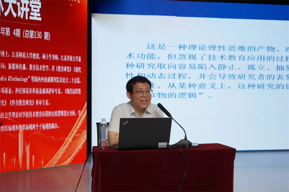 随后,安涛教授详细地阐述了教育技术的理论基础。他从布迪厄实践理论入手对比了客观主义与主观主义,论述教育技术不仅仅是工具和手段的简单运用,更是教育思想、教学理念的变革和创新。在教育技术理论的指导下,学校教育可以实现更加个性化、精准化的教学,从而提高员工的学习效果和满意度。最后,安涛教授针对学校技术实践的逻辑提出了自己的见解和建议。他认为,学校教育在引入教育技术时,应该遵循一定的时间逻辑和实践步骤,而学校技术实践的关系转向不仅要统一到整个教育体系中,还要对技术实践进行惯习重塑、资本优化,从而提升教育技术的生命力。