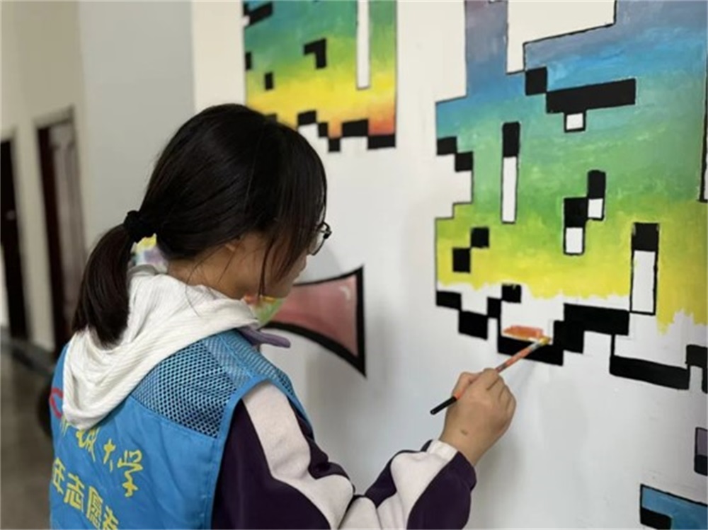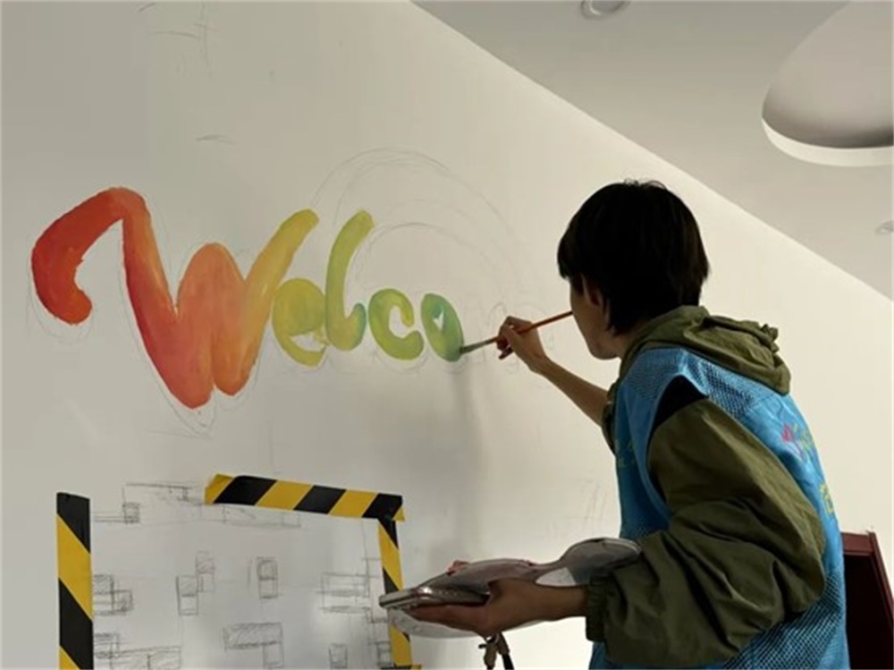 图1 志愿者们墙绘活动伊始