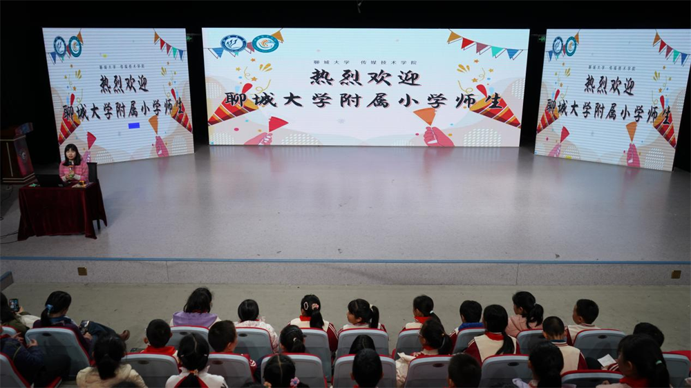 图1、2 主持人杨景合代表学院欢迎聊大附小师生
