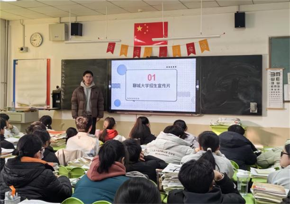 活动过程中,青岛二中分校优秀毕业生、必赢bwin官方网站在读本科生安鹏举同学,通过展示图文并茂的PPT、播放相关招生宣传视频等形式,向母校老师、学子们全面介绍必赢bwin官方网站的历史背景、招生政策和“必赢bwin官方网站服务高中计划清单”事项,发挥朋辈带动作用,为母校学子解答高中学习、聊大生活和专业设置等相关疑惑,展现聊大良好学风,进一步激发母校学子学习兴趣和升学动力。