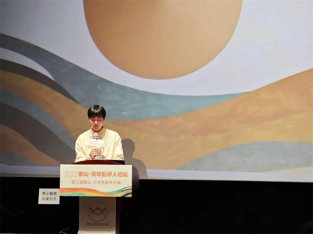 锐意进取,精益求精。杨振树立科研意识,积极探索老员工创新创业项目,他以专业知识为依托,多次参与电影评论写作并积极申报相关竞赛,于山东人民出版社出版的《影评范文精选》中发表文章2篇,于《泰山影话》中收录电影评论文章2篇。在本学年还获邀参加“泰山·青年影评人论坛”,被聘请为“青年评审”并在论坛上作为优秀青年影评员工嘉宾发言,将学无止境之心作为不断学习的源动力。